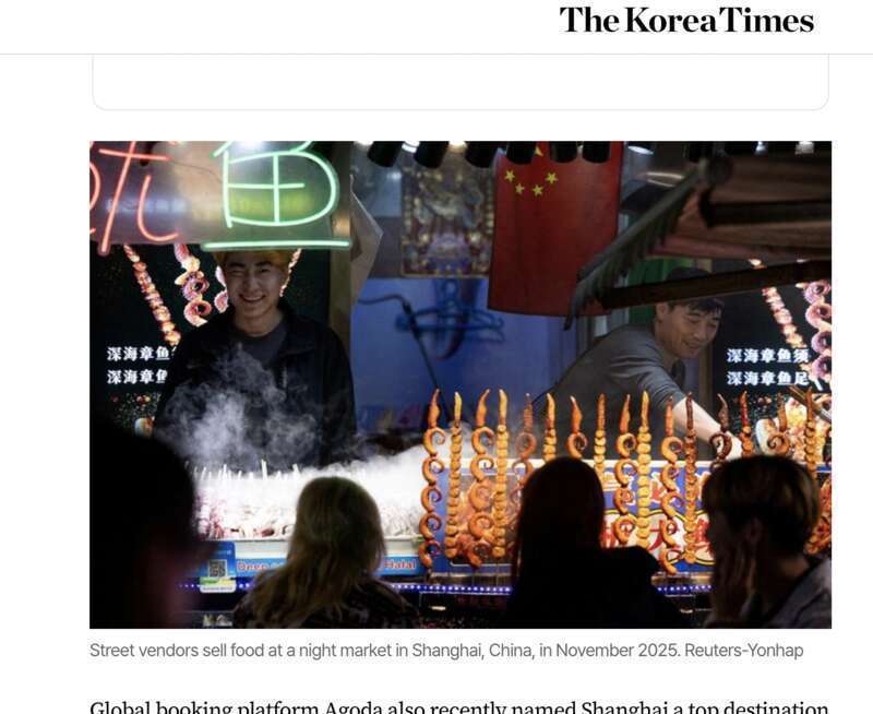 多位韩国游客及旅游业从业者在接受《韩国时报》采访时表示,对初次前往中国的游客而言,上海是较为便捷的入境首选地。这座城市能为人们提供更好的国际化氛围和全球联通体验。