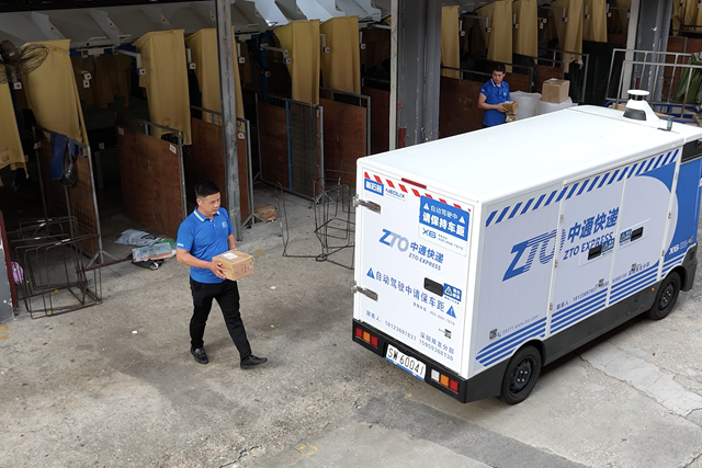 以中通深圳双龙网点为例,在2025年8月投用2辆无人车,“双11”前又新增3辆,总量达5辆。从工作情况看,网点的无人车每车可以满载600件金御网,日均可循环派送8000~10000票货物。